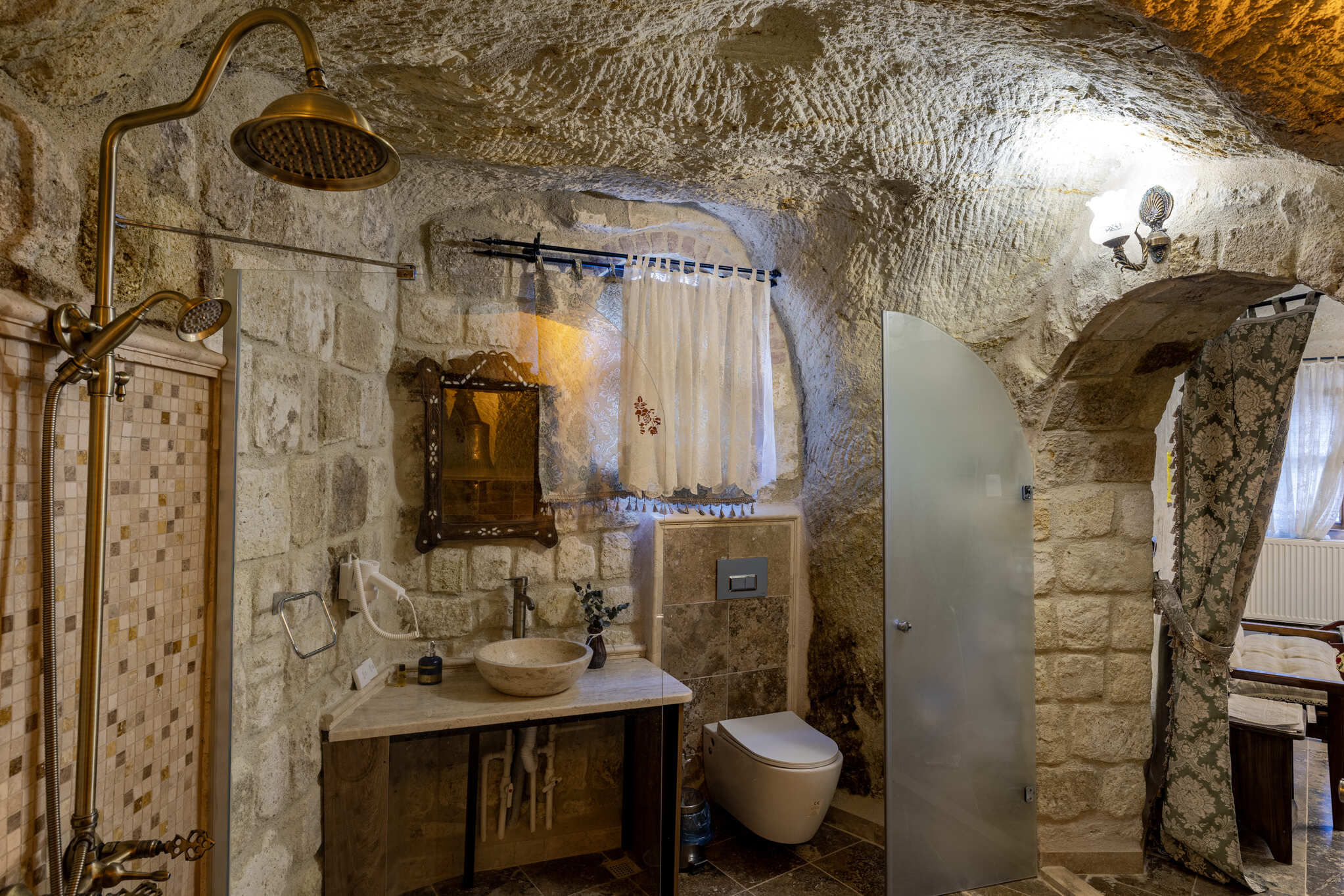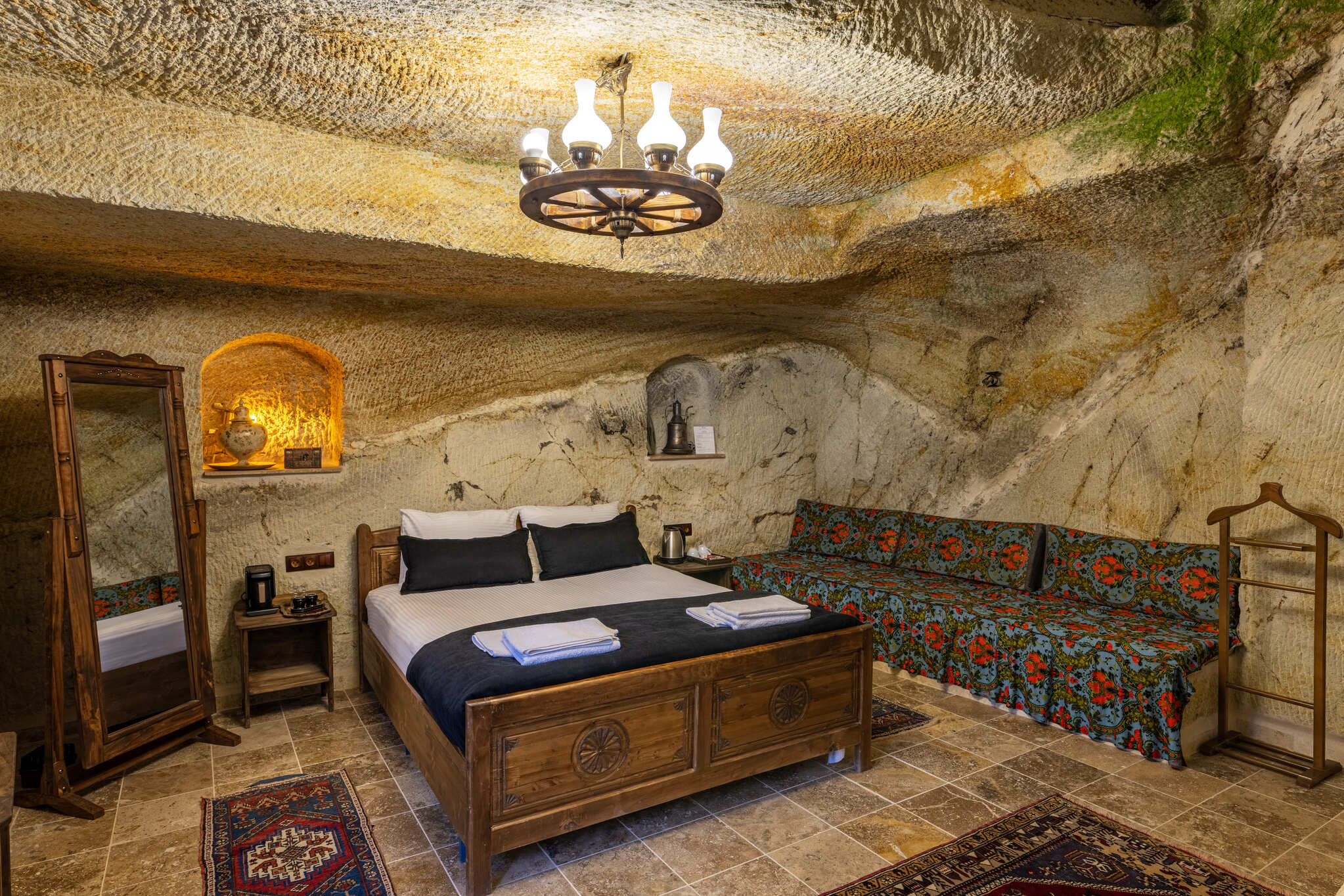 Suit Oda, Keyfi Ala Kapadokya Oteli’nin büyüleyici atmosferini en özel şekilde yaşamak isteyen misafirler için tasarlanmıştır. Doğal Kapadokya taşlarının sıcak dokusuyla şekillenen oda, hem şık hem de huzurlu bir konaklama deneyimi sunar.